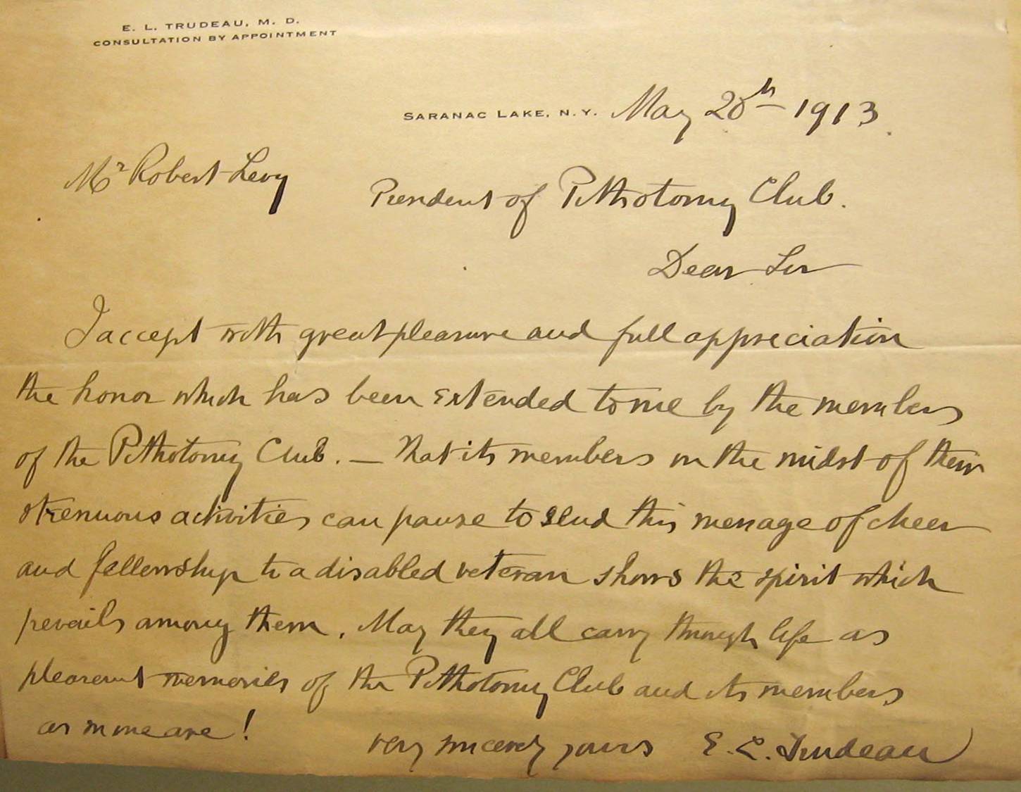 (photograph courtesy of the Pithotomy Club) The Club was actually formed during the senior year of the first Johns Hopkins Medical School Class, 1896-1897. William G. MacCallum and Joseph L. Nichols had rented a house at 1200 Guilford Avenue and as a housewarming celebration invited Drs. William Welch and William Osler, other faculty members, and friends to the house and entertained them with a keg of beer. These gatherings were repeated several times and finally several classmates joined MacCallum and Nichols to organize a club that could foster the spirit of student-faculty friendship. Of the eighteen members of the first medical school class at Hopkins, nine were founding members of the Pithotomy Club: Charles Bardeen from Harvard, Thomas R. Brown from Johns Hopkins, Lester W. Day from Yale, Louis P. Hamburger from Johns Hopkins, William George MacCallum who transferred from the Toronto University School of Medicine, James F. Mitchell from Johns Hopkins, Joseph Nichols from Harvard, Eugene L. Opie who transferred from the College of Physicians and Surgeons in Baltimore, and Richard P. Strong from Yale.